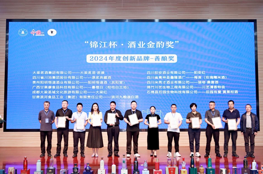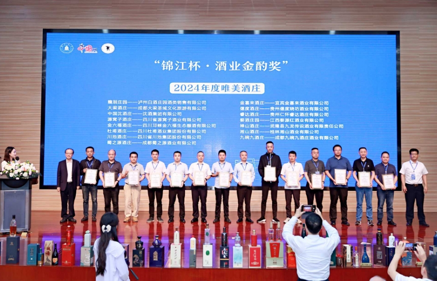 其中,中道華普設(shè)計(jì)集團(tuán)、四川華宇瑞得科技獲“2024年度酒業(yè)卓越成就獎”;金六福·熊貓酒、白金酒(金壇)、大梁茗酒、湘山老酒、源窩子老酒獲評“2024年度影響力品牌”;杜甫文化酒、陽明悟道酒、故宮貢酒等六款產(chǎn)品獲評“2024年度文化名酒”;龍洄莊園、大梁酒莊、中國沈酒莊等15家酒莊獲評“2024年度唯美酒莊”;唐莊醬酒、金喜來·酒谷窖藏、大梁茗酒·茗媛等數(shù)十款產(chǎn)品分別獲評“2024年度創(chuàng)新品牌-杰釀獎/佳釀獎/善釀獎”。