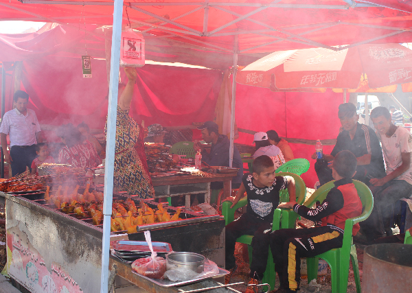 巴扎(編者按:集市、農貿市場)日當天,村民能夠獲得更多收入。村民百科熱阿吉·米曼看準了巴扎帶來的商機,他籌集150萬元,建起了巴扎最大的餐廳。裝修好、菜品好,餐廳的生意自然就好,周邊村民都來這里吃飯。百科熱阿吉·米曼說:“看到巴扎這么火爆,人流量解決了,餐飲肯定有前景。所以當別人去巴扎上做生意的時候,我就做起了巴扎上生意人的生意。”