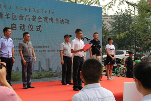 青羊區食安委副主任、區政府應急辦副主任陳琦,區食安辦主任、區市場和質量監督管理局局長張革平,以及區食安委成員單位有關負責人出席啟動儀式。監管人員、食品生產經營企業代表、網絡餐飲代表、社區居民代表以及省、市、區新聞媒體等200余人參加啟動儀式。