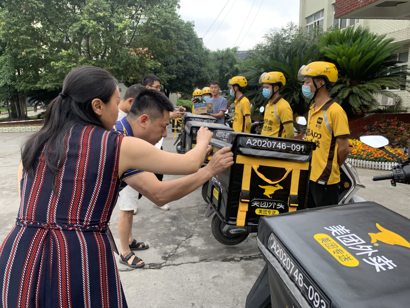 6月8日,武侯區機投橋市場監管所開展“創建國家食品安全示范城市系列宣傳行動”之美團騎手護航宣傳暨貼標儀式。工作人員向美團站點負責人贈送了抗疫物資,并為轄區全部美團專送騎手,超200余輛送餐車輛張貼了宣傳標語,此次活動預計持續到9月。