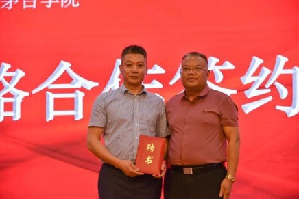 由茅臺學(xué)院黨委副書記、常務(wù)副校長李增馳為夜郎古酒業(yè)董事長余方強頒發(fā)“茅臺學(xué)院工商管理系實習(xí)實訓(xùn)指導(dǎo)教師”聘書。
