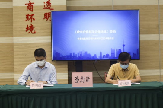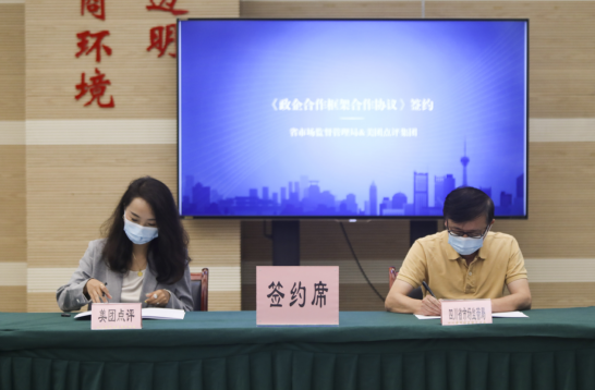 四川省市場監督管理局黨組成員、安全總監吳銳代表四川省市場監督管理局與阿里本地生活服務公司、美團點評集團分別簽訂《政企合作框架協議》。