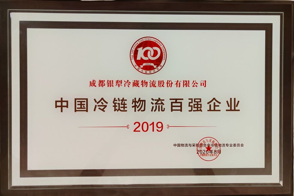 成都銀犁榮獲2019年中國冷鏈物流百強企業