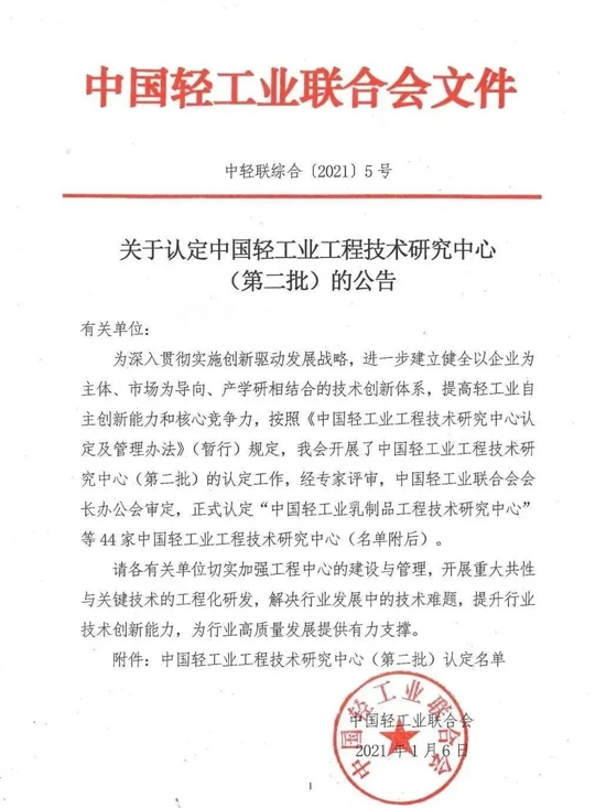 2021年1月,中國輕工業聯合會發文,正式認定郎酒股份為中國輕工業醬香型白酒生態釀造工程技術研究中心。