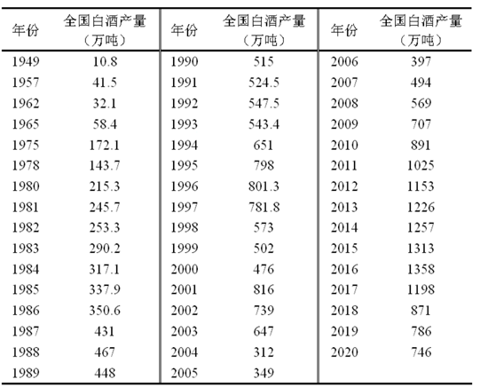 1991年,國家名酒17個,優質酒54個,白酒總產量524萬噸,但名優酒僅占10%,全國產銷名白酒更是只有4萬多噸,新型白酒(液態發酵酒)與傳統白酒各占45%。