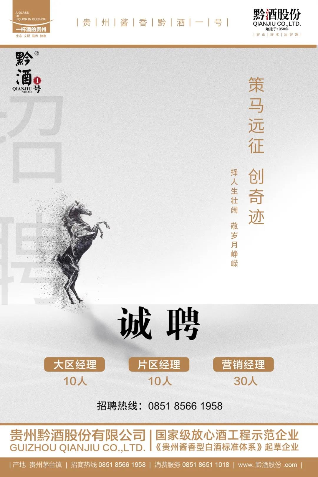 擇人生壯闊,敬歲月崢嶸。近日,貴州黔酒股份有限公司開啟2021年菁英薈,面向全國誠聘大區經理10人,片區經理10人,營銷經理30人,邀請志同道合之人策馬遠征,勇創奇跡。