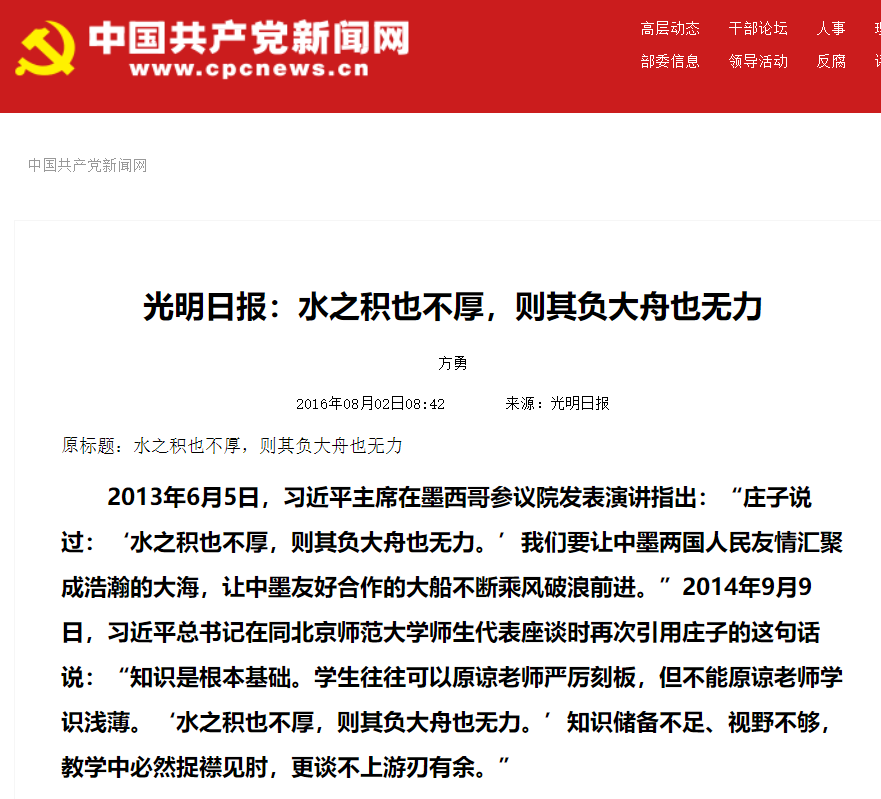 莊子的哲學思想是中國傳統文化精髓的重要組成部分,莊子的言論金句,也多次被國家領導人在多種國內國際重要交往活動中引用。