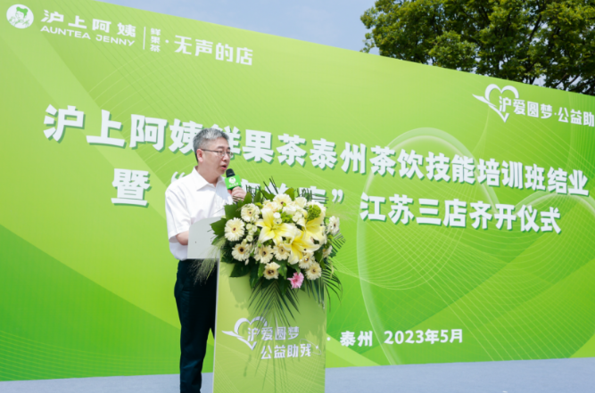 5月21日是第33個“全國助殘日”。21日上午,滬上阿姨鮮果茶泰州茶飲技能培訓班結業暨“無聲的店”江蘇三店齊開儀式在江蘇省泰州市圓滿舉行。江蘇省殘疾人就業管理中心主任程雷,江蘇省泰州市殘疾人聯合會黨組書記、理事長欒斌,江蘇省泰州市殘疾人聯合會黨組成員、副理事長韓兵,江蘇省泰州市殘疾人就業服務中心主任蔡俊雅,滬上阿姨鮮果茶創始人、CEO單衛鈞,滬上阿姨鮮果茶“無聲的店”生態合作伙伴鞠葉等嘉賓應邀出席。