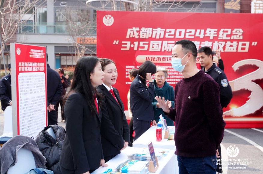 3月15日,成都市市場監督管理局、成都市保護消費者權益委員會、高新區管委會在高新區鐵像寺水街聯合舉辦紀念“3·15國際消費者權益日”宣傳活動。