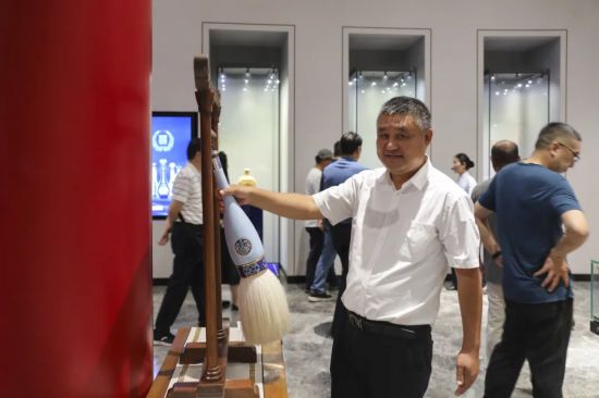 在企業展覽館,老照片、老酒商標、老酒產品展現了洋河、雙溝兩大中國名酒的輝煌歷程,也勾起了作家們與酒的青春記憶。《宿豫文藝》主編周永文談到,家里有一瓶70年代帶有長江大橋的洋河老酒,一直珍藏至今,有人出上萬想要,都沒舍得賣。在周永文心中,這瓶酒是無價的,是當時在洋河釀酒車間的舅舅送的,凝聚著不可替代的情感記憶。除了帶有長江大橋的洋河老酒,周永文家里還有不少藏酒。