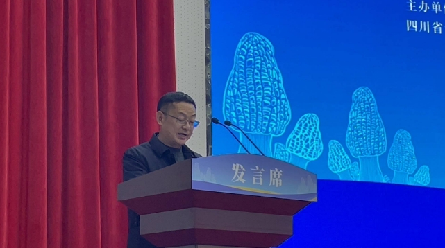 技術分享會環節,中國農業科學院都市農業研究所副所長、四川省食用菌協會會長甘炳成作“羊肚菌產業發展現狀與展望”的主題報告;
