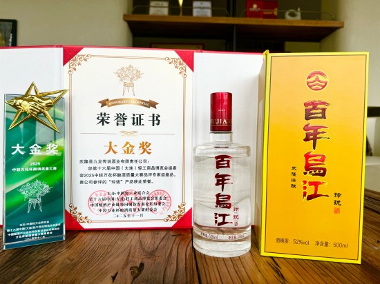 在本屆博覽會首次舉辦的2025中輕萬花杯釀酒質量大賽中,武隆縣九龍傳說酒業有限責任公司旗下“百年烏江·玲瓏”酒產品憑借卓越品質和深厚文化,斬獲“大金獎”重磅獎項。