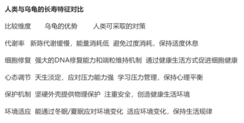 細(xì)胞分裂次數(shù)是生物壽命的重要限制因素之一。人類細(xì)胞約能分裂50-60代,理論壽命在120-150歲左右;而烏龜細(xì)胞分裂代數(shù)可達(dá)130代以上,理論壽命超過300歲。這意味著,從根本上說,烏龜?shù)募?xì)胞有著更長的生命周期和更強(qiáng)的耐久性。現(xiàn)代社會(huì)的快節(jié)奏生活使人們長期處于高速運(yùn)轉(zhuǎn)狀態(tài),這不利于長壽。“龜式生活”啟示我們——適度放慢生活節(jié)奏有利于健康長壽。研究顯示,長期承受高壓和緊張狀態(tài)的人群,其端粒長度明顯短于同齡人,而端粒是控制細(xì)胞衰老的關(guān)鍵因素。